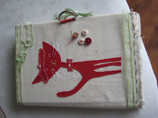 To close the note book a set of D rings (used for curtain tie backs} were stitched to the front and back of the book and ribbon was added to these to tie close.